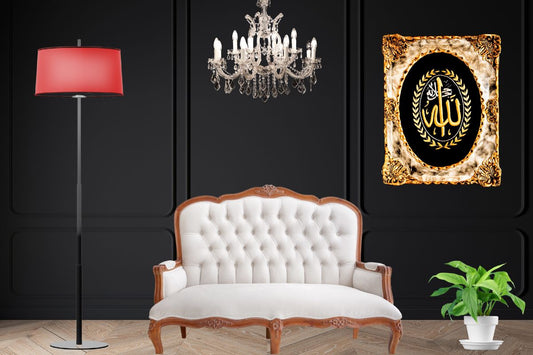 لوحة فنية جدارية إسلامية فاخرة جاهزة للتعليق" الله " بالخط العربي