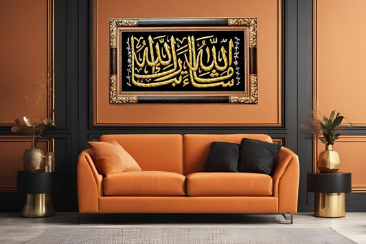 Handcrafted Ma Shaa Allah La Quowata Ila Billah Islamic Calligraphy in Gold Frame Ready to HangRegular price £249.99 GBPRegular priceUnit price / per£599.99 GBPSale price £249.99 GBPSale