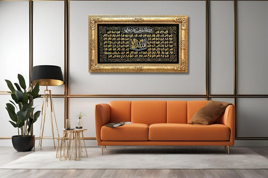 99 Names of Allah Luxurious Thuluth Calligraphy Wall Art With Purl EmbroideryRegular price £249.99 GBPRegular priceUnit price / per£599.00 GBPSale price £249.99 GBPSale